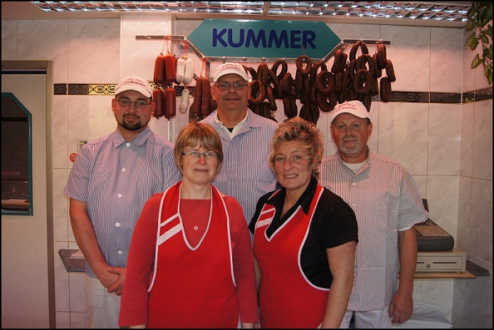sowie zwei Fleischergesellen in der Produktion das tägliche Geschäft.