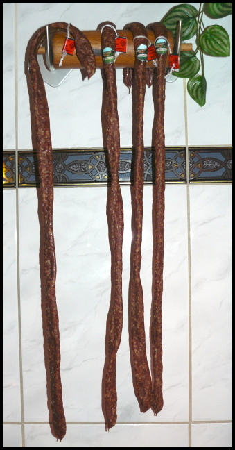 Wanderstock mit echtem Stocknagel aus Knackwurst gefertigt, luftgetrocknet.