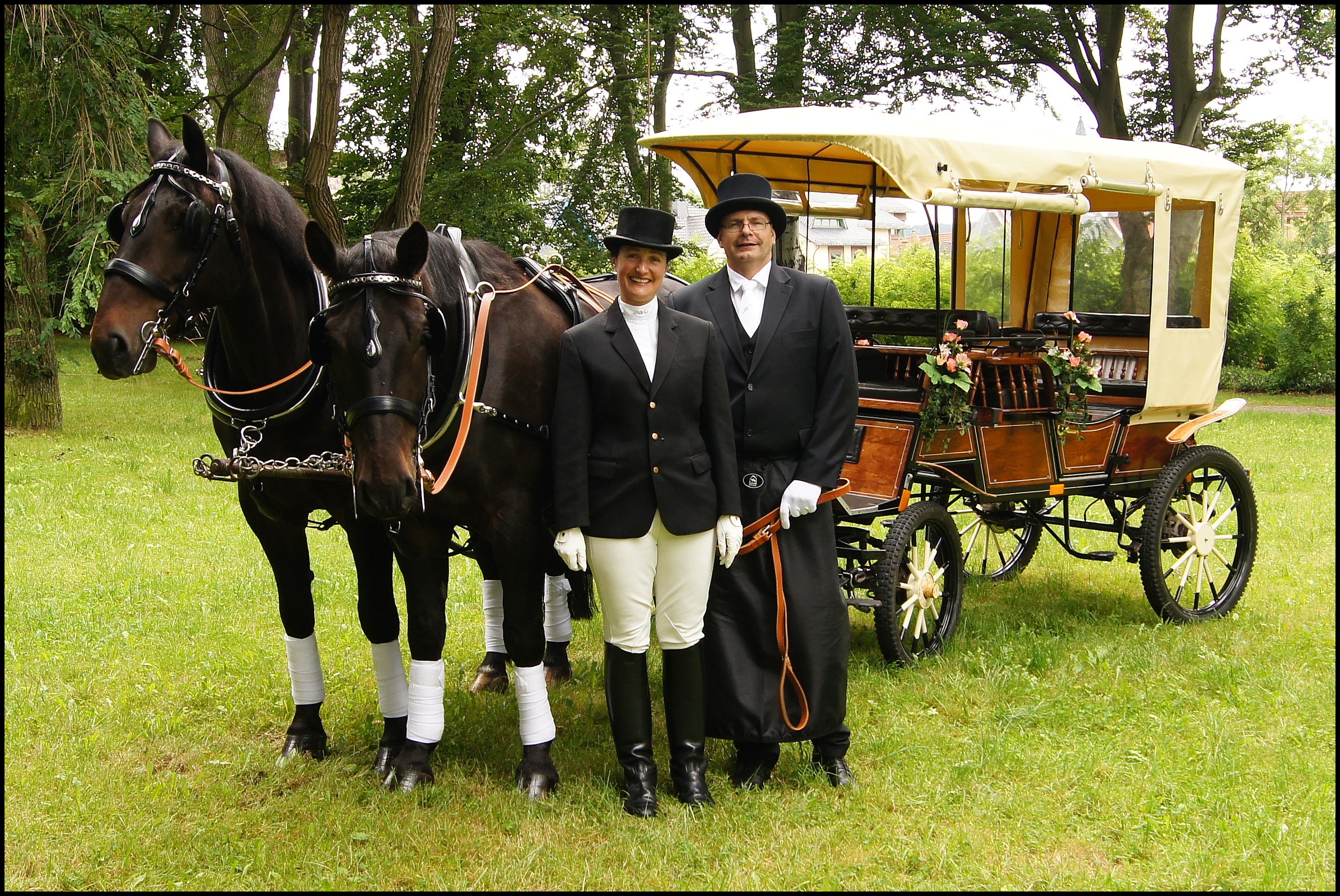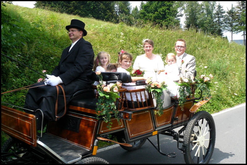 Auf eine unserer Kutschen können Sie bequem über Auffahrrampen einen Rollstuhl mitnehmen, neben dem Rollstuhl passen noch drei erwachsene Personen mit auf die Kutsche. In Fahrtrichtung gestellt wird dann auch im Rollstuhl die Kutschfahrt zu einem unvergesslichen Erlebnis.