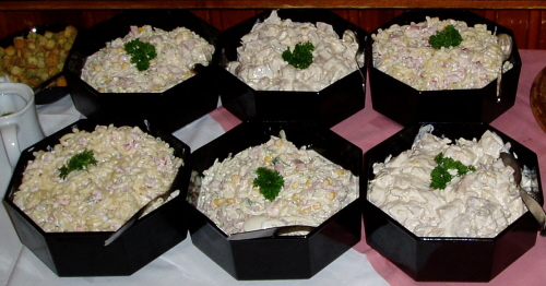 - Eiersalat, Kartoffelsalat, Gurkensalat oder andere Salate nach Ihrer Wahl